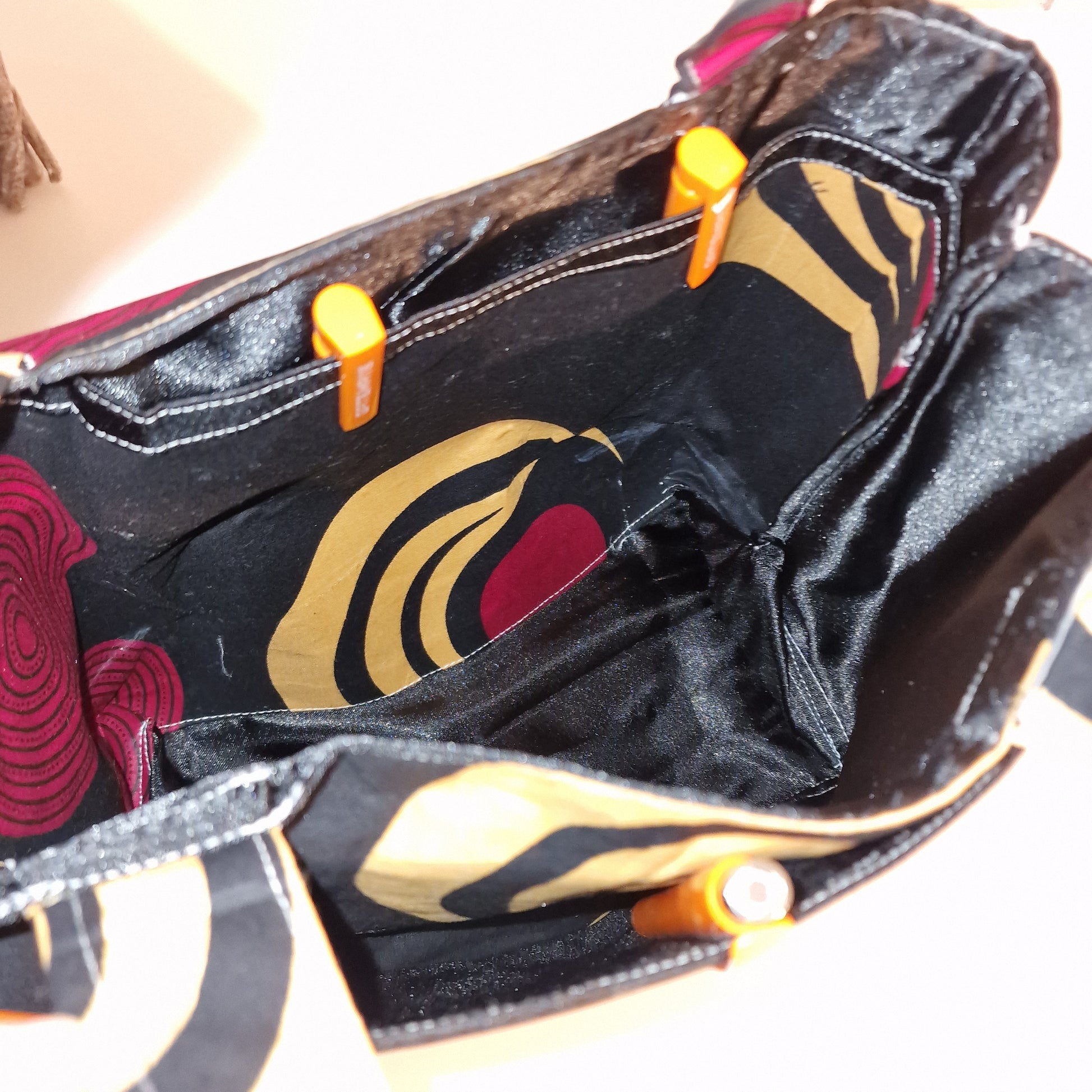 This African print tote bag is not only stylish but also eco-friendly, making it a sustainable choice for everyday use. Plus, it has plenty of space for everything I need, from everday handbag to books.📚 I absolutely love its vibrant design that adds a pop of color to any outfit. It has double pockets pne inside and another on the outside ✨