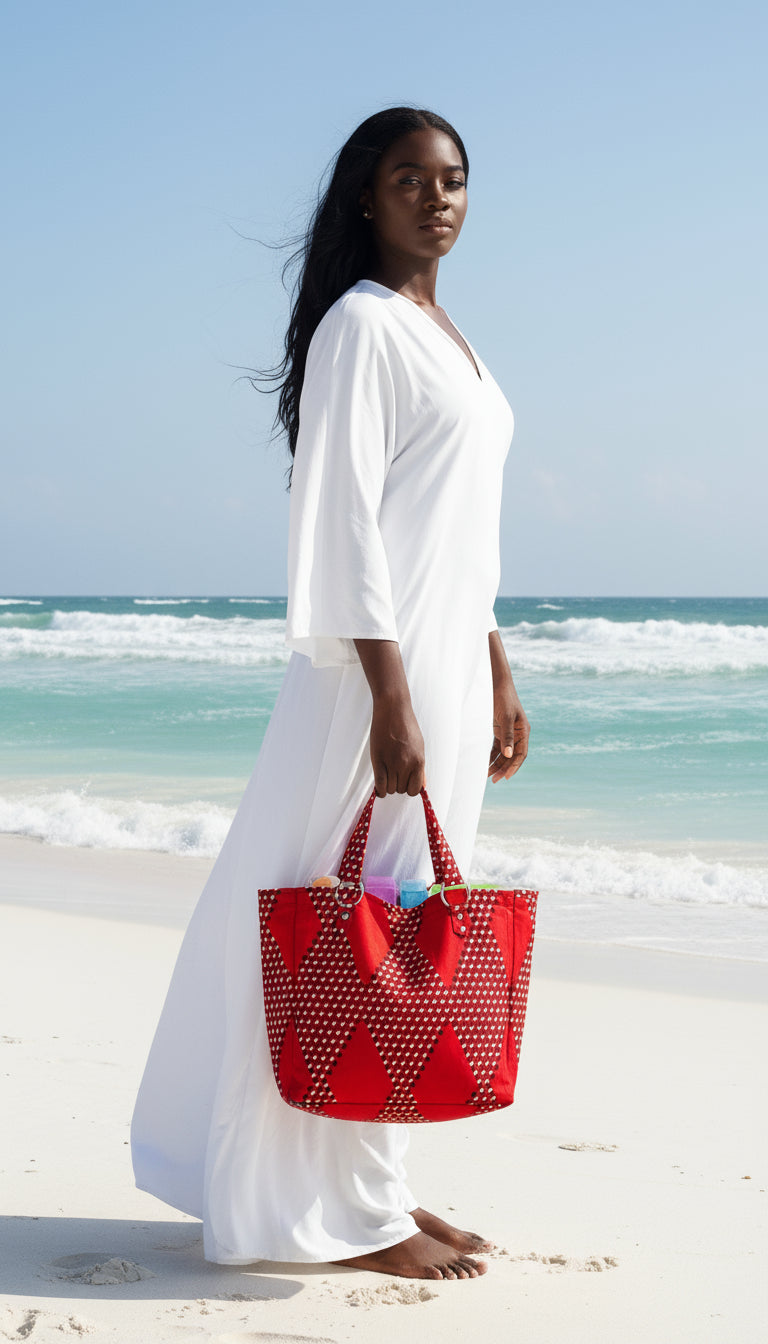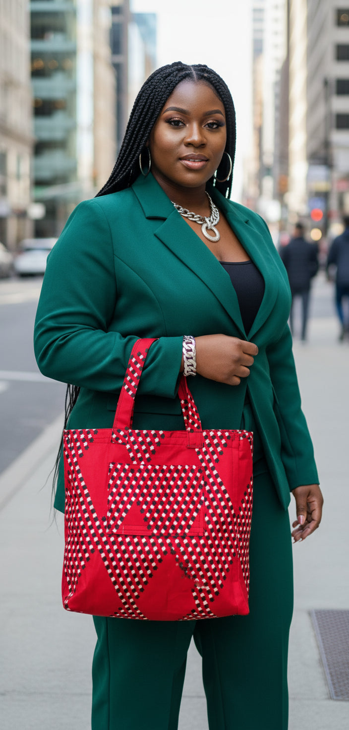 This large fabric tote bag is made from durable African wax cotton, designed for shopping, travel, work, or daily use.