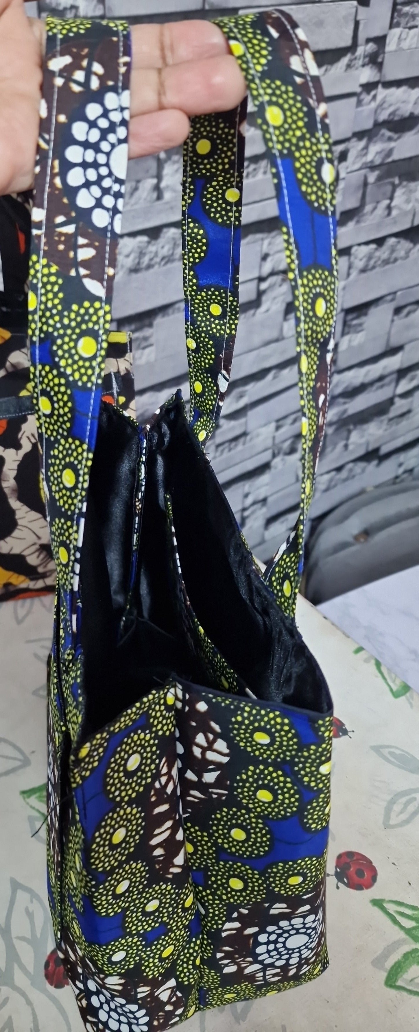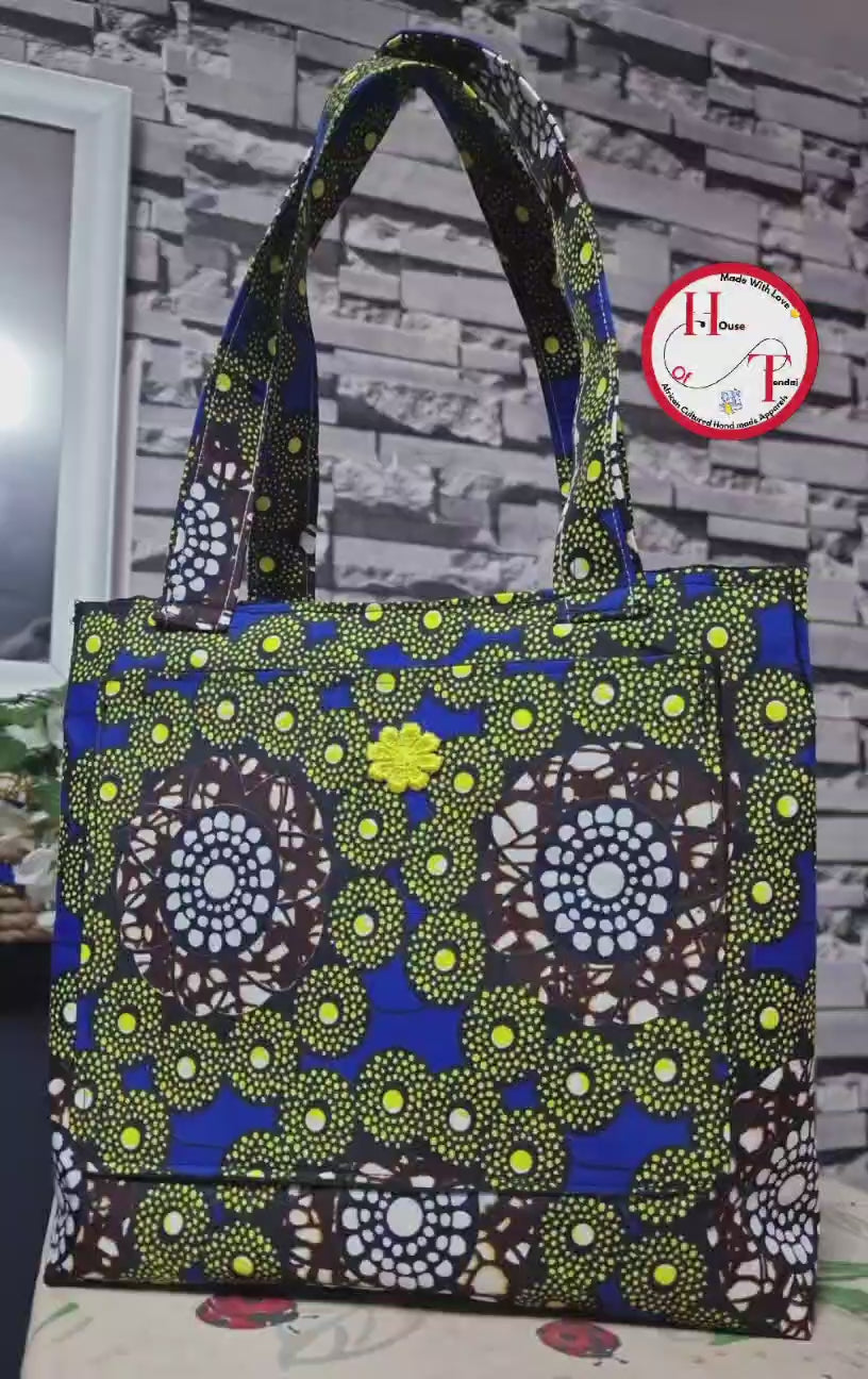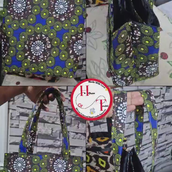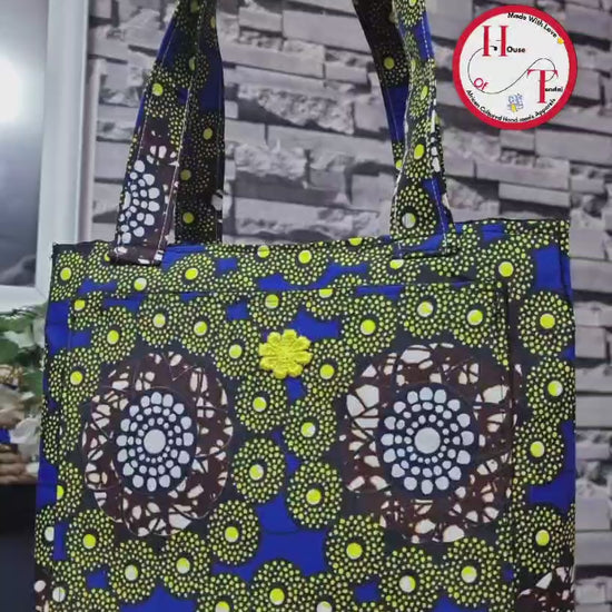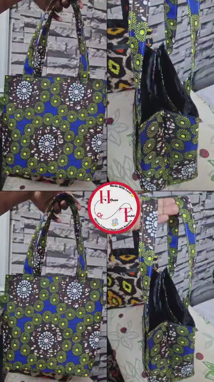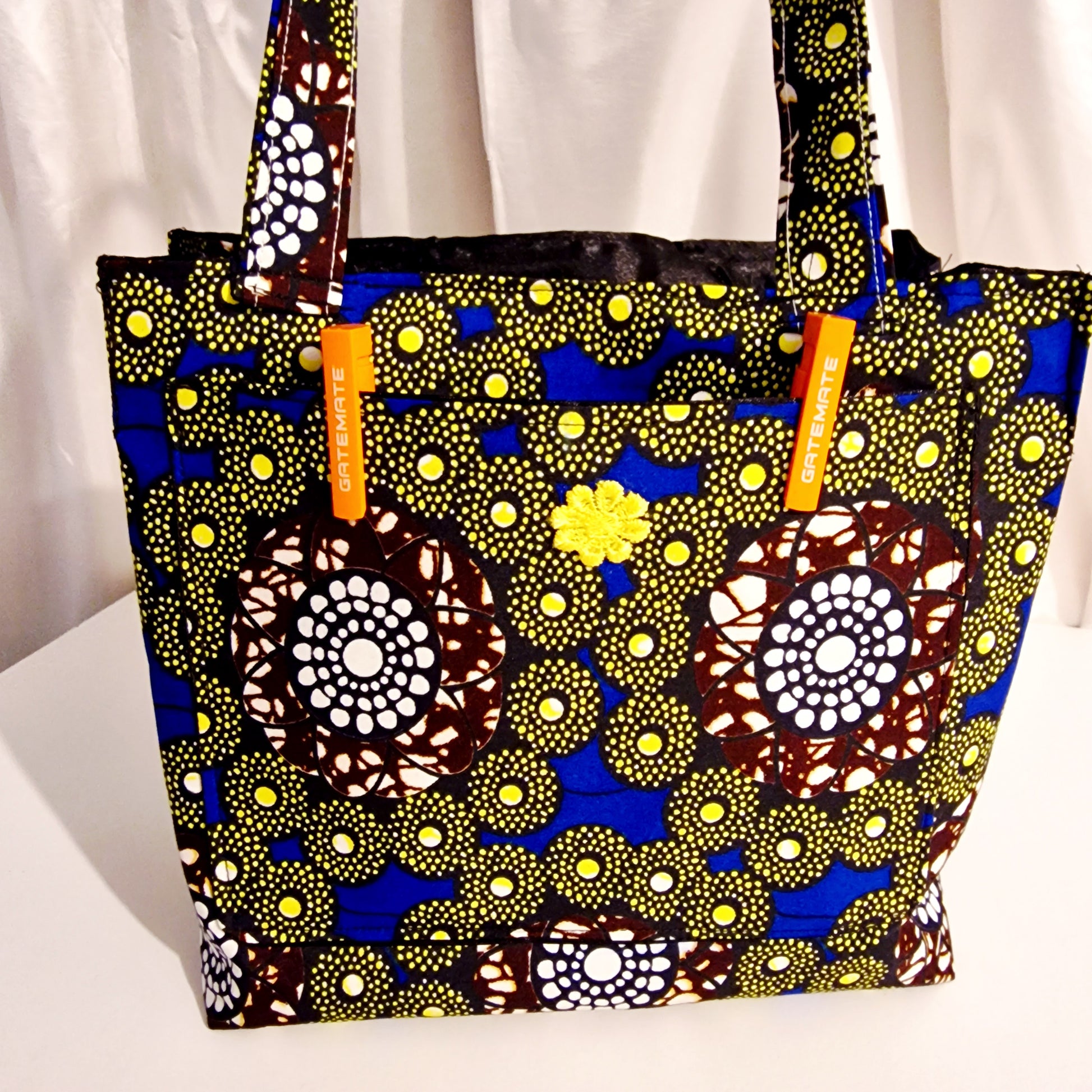 This lightweight tote bag features everyday African wax fabric, making it both stylish and functional. With its washable material, it is perfect for everyday use and can easily be cleaned. Stay organized and fashionable with this versatile bag.